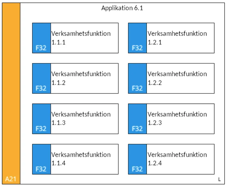 En visuell beskrivning av ett önskat målläge med den funktionalitet som en logisk applikation bör ha uttryckt i form av verksamhetsfunktioner. Läs mer här. Användning