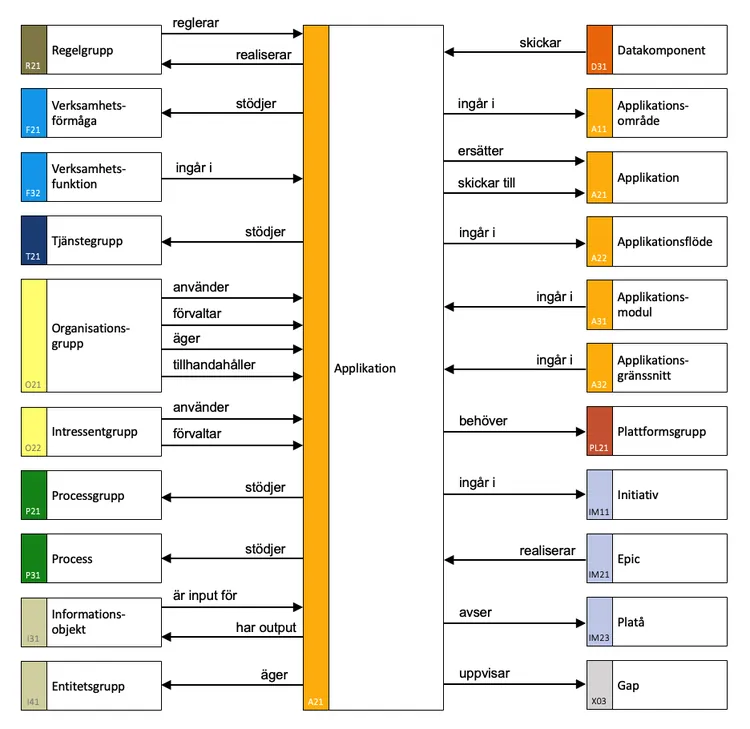 En visuell beskrivning av vilka andra objekt som en viss applikationsmodul är relaterad till. Den innehåller vanligen ett urval av omgivande objekt och relationer för att stödja en specifik analys. Användning
