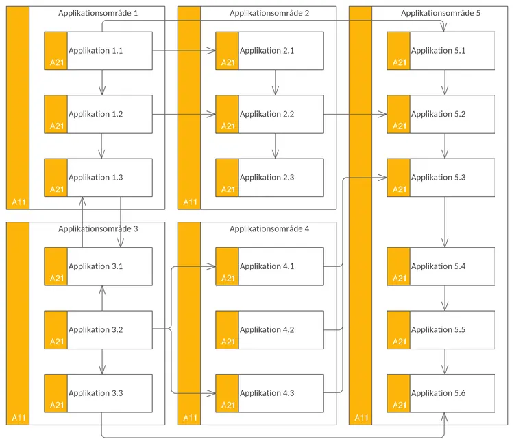 En visuell beskrivning av hur applikationsmodulerna är integrerade med varandra, både inom en viss applikation och mellan applikationer. Användning