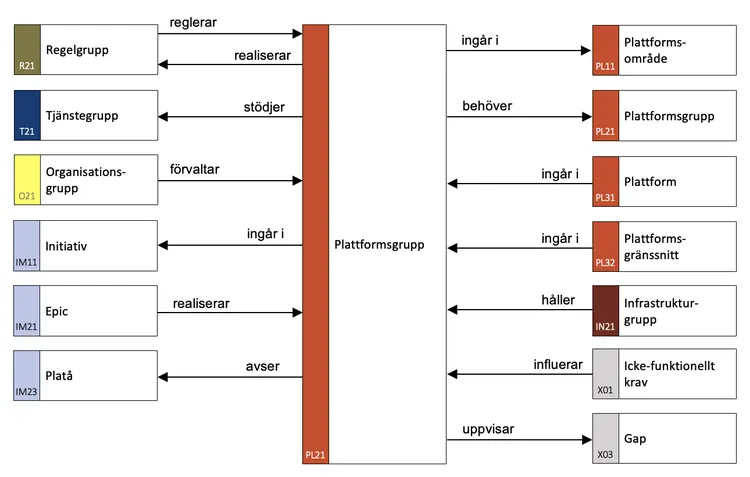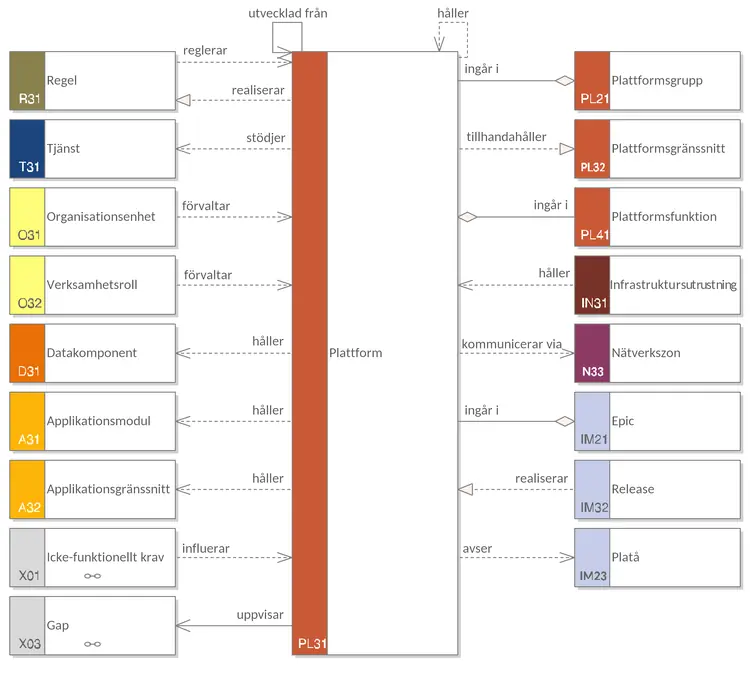 En visuell beskrivning av vilka andra objekt som en viss plattform är relaterad till. Den innehåller vanligen ett urval av omgivande objekt och relationer för att stödja en specifik analys. Användning