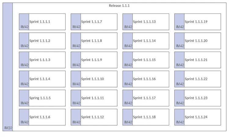 En visuell beskrivning av innehållet i en release som visar vilka sprintar som ingår. Användning